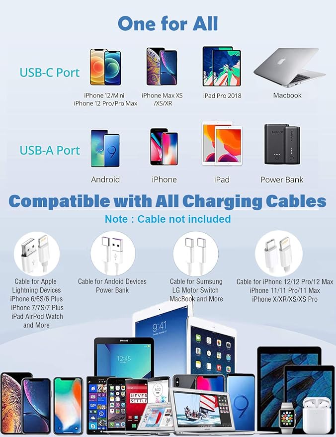 5️⃣ Wide Compatibility – Fully compatible with any USB-C-enabled device. Apple recommends pairing with the MacBook Air (M2, 13-inch) for optimal performance. Also supports fast charging for iPhones and iPads listed below.